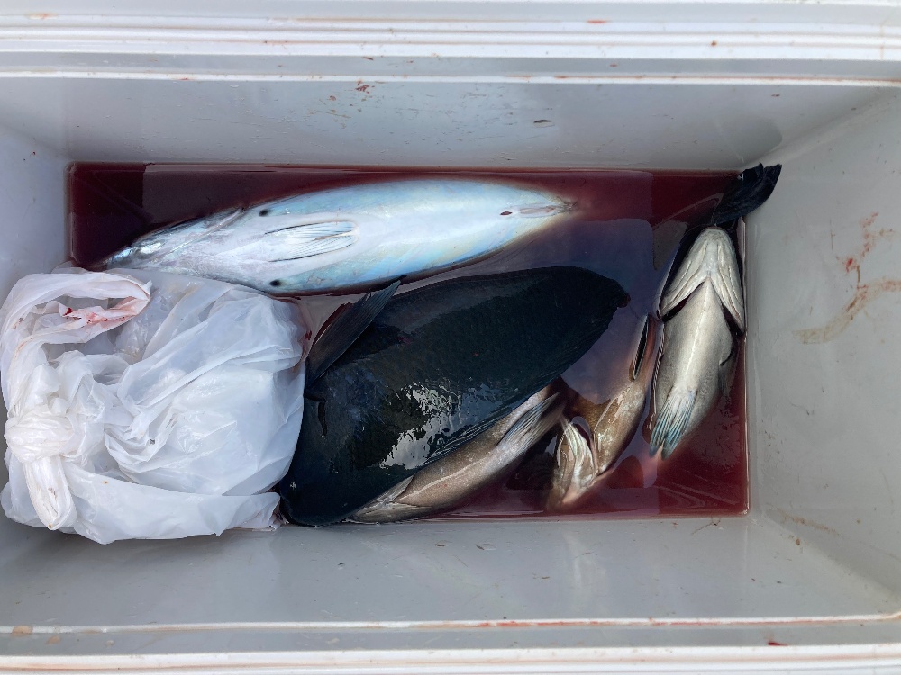 ゴロウでイシガキ40㎝。オキギオン、ウノクソでグレ30㎝〜35㎝。オキナガでグレ、イサキ。